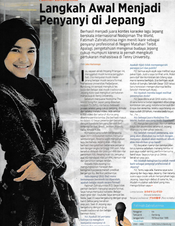Mahasiswi Pemenang Kontes Karaoke Di Jepang Fatimah Zahratunnisa