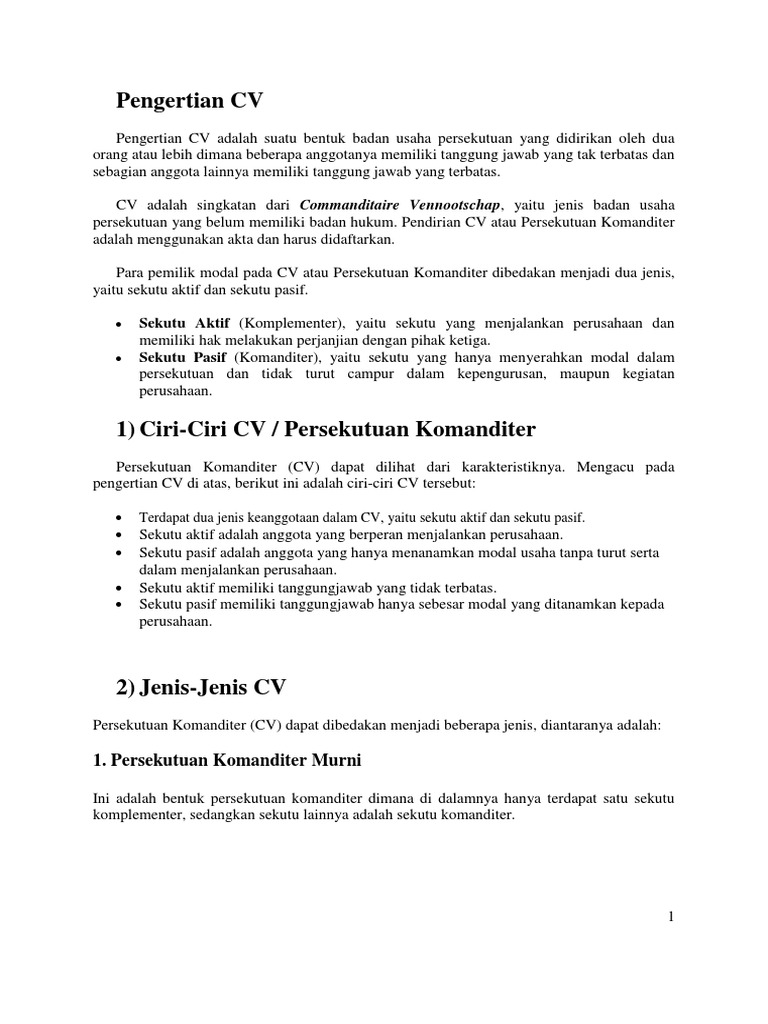 Pengertian Cv Dasar Hukum Bentuk Kelebihan Dan Prosedur