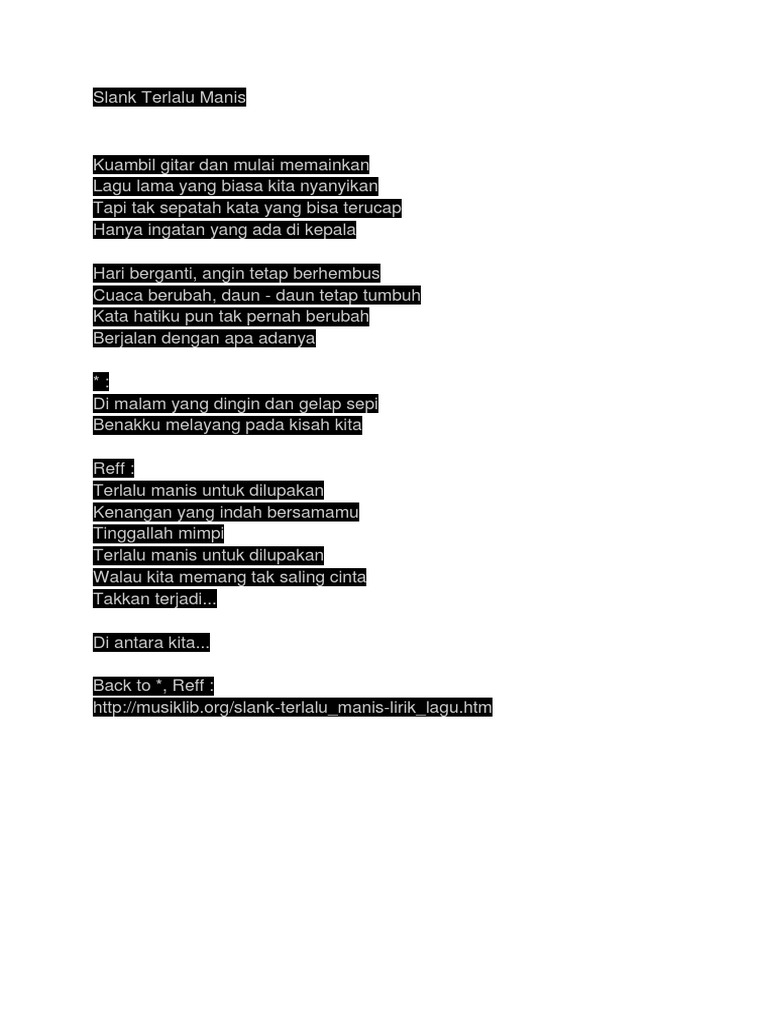Lirik Lagu Terlalu Manis Slank Chords Chordify